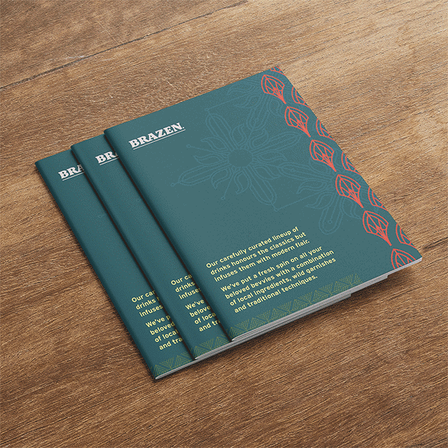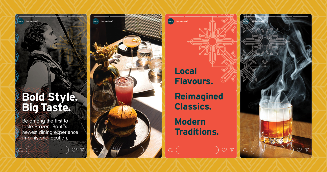 Brazen is a restaurant nestled in the historic Mount Royal Hotel in Banff National Park, and gets it's name from the pioneering mountaineers who helped establish the town. The visual identity tips it's hat to the ornate detailing of the hotel, while the bold colours and typography help the brand stand out in modern applications.